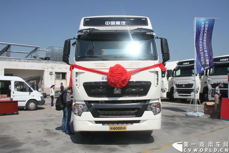 5月12日,中国重汽集团曼技术产品上市一周年暨第6000辆曼技术产品交车仪式在济南举行。中国重汽集团董事长马纯济、总经理蔡东、副总经理于有德、刘伟、曼集团高层Franz Neundlinger出席仪式。图为交车仪式现场展示的第6000辆曼技术重汽卡车。