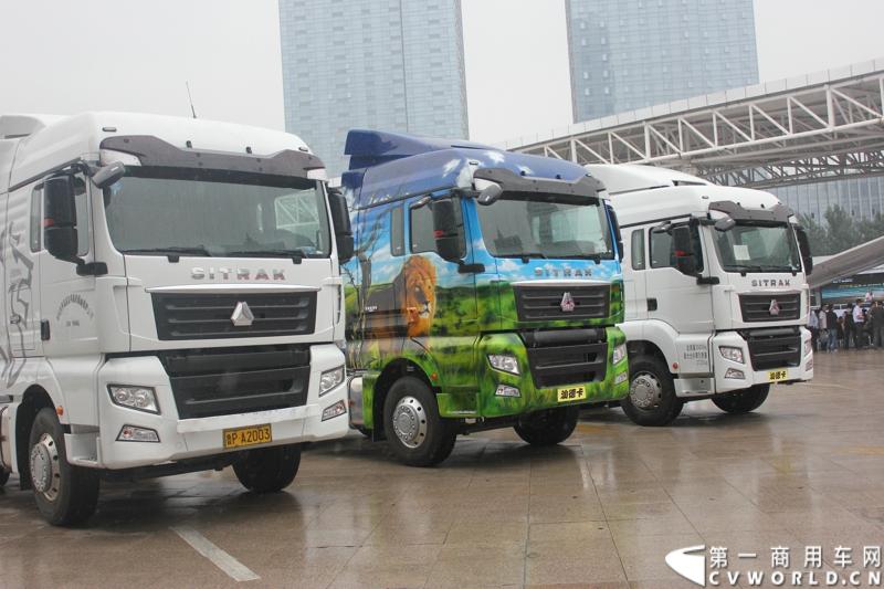 7月21日-24日,中国重汽汕德卡SITRAK-2014全国物流园区体验式互动路演在哈尔滨市启开帷幕。图为现场展车。