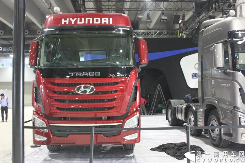 2014年11月20日, 为期三日的2014广州国际商用车展在广州琶洲中国进出口商品交易会展馆B区举行。将会有五辆车参展,其中包括创虎重卡P410、康恩迪客车和瑞越轻卡。图为四川现代创虎P410
