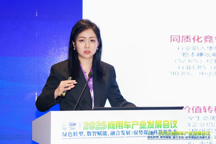 中汽数据有限公司商用车研究室主任刘辰发表精彩演讲。